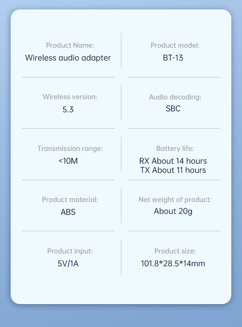 Specification: 2-in-1 Bluetooth 53 Audio Adapter
