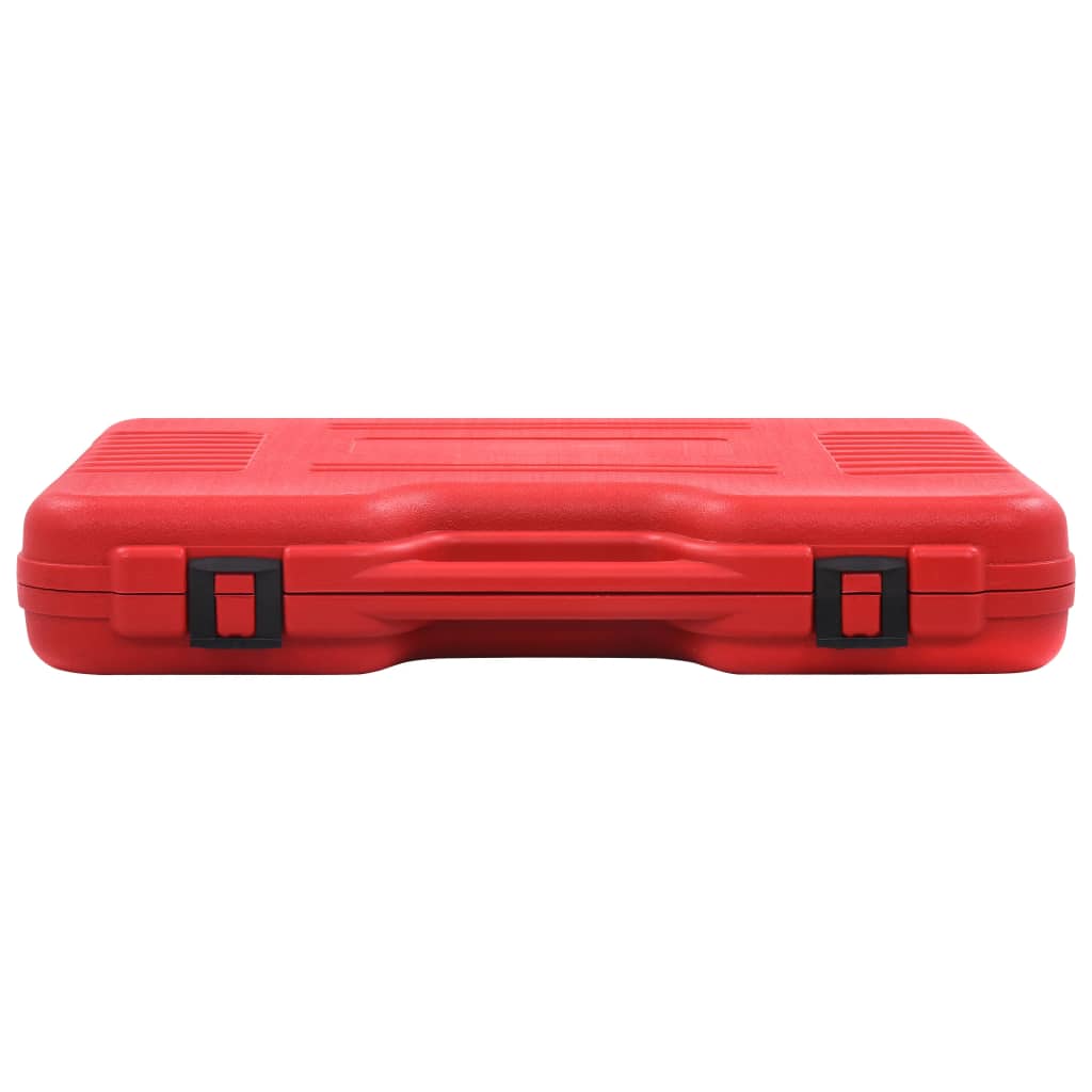 This tool kit allows you to easily check the pressure in your cooling system and refill with new coolant by creating a vacuum. Made from high-quality materials, this kit is practical, durable, and rust-resistant. Color-coded radiator test caps (included) make it easy to identify and select the correct cap. The 27-piece adapter set is compatible with most domestic and imported vehicles. The pressure pump can check for leaks in the cooling system by connecting an adapter to the radiator filler neck or the wastewater tank. The tool kit also comes in a blow-molded case for easy storage and transport.