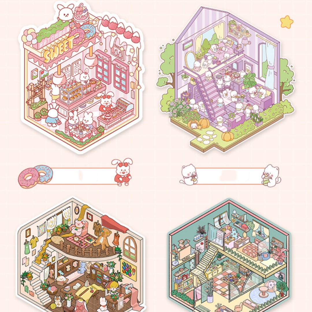 3d Stereo Cottage Landscaping Miniature Scene Stickers Book