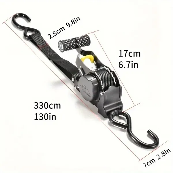 Specification: Automatic Ratchet Tension Belt Tensioner, Steel, Heavy Duty Harness For Luggage, Motorcycle And Cargo Holding, With Automatic Belt Recovery Function, No Assembly Required