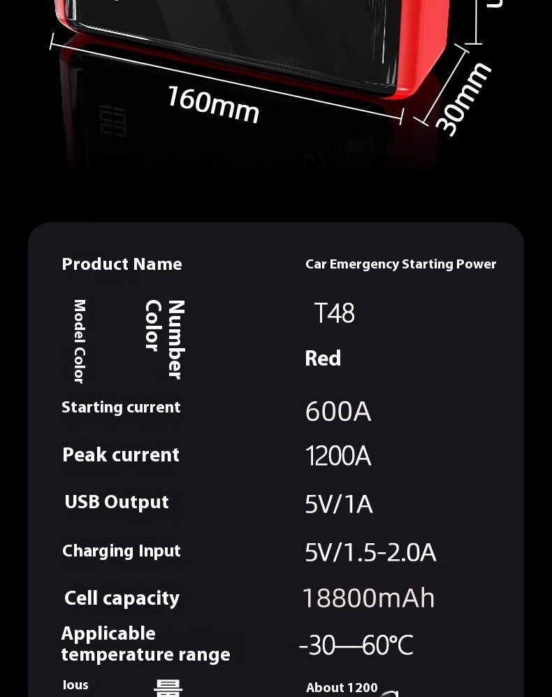 Specification: Automobile Emergency Start Power Source Standby Rescue And Electric Ignition Starting Treasure