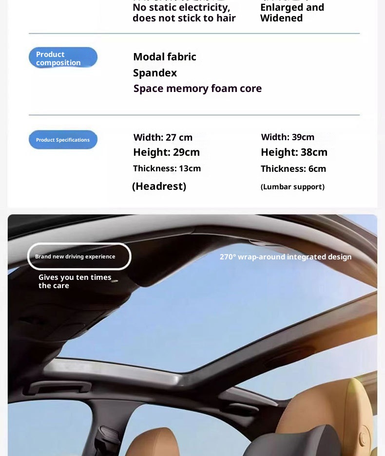 Size: one headrest, one lumbar support pillow, headrest lumbar support pillow