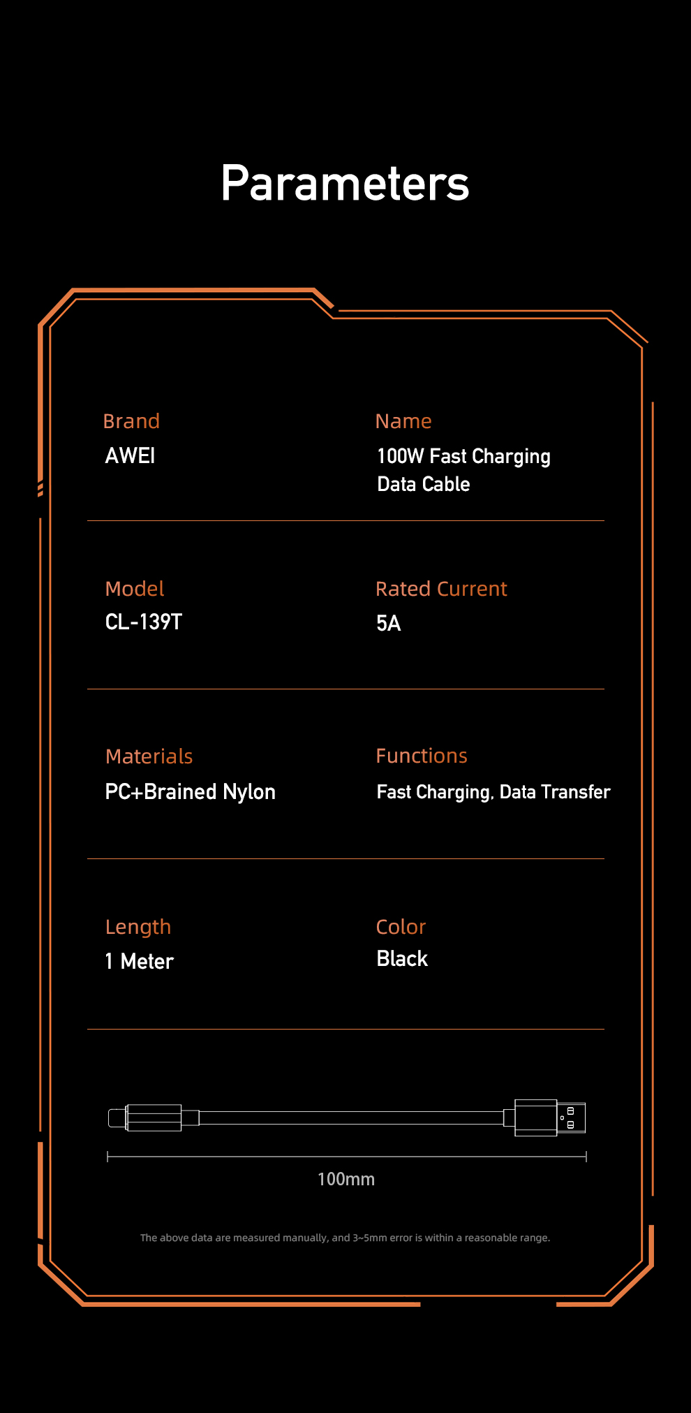 Specification: AWEI Smart Fast Charging Data Cable 1M