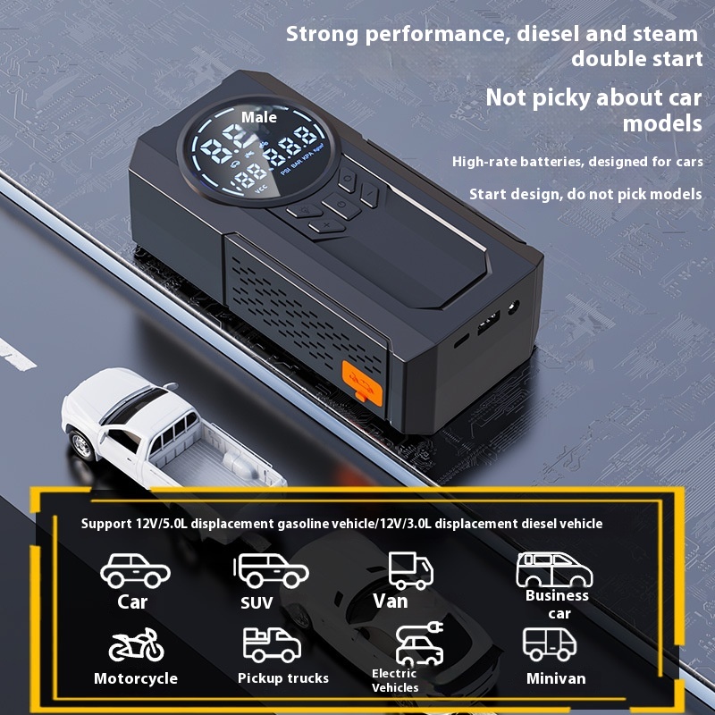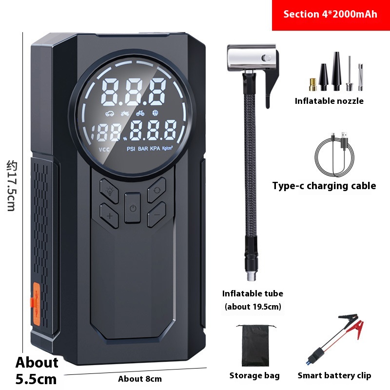 Specification: wireless digital display inflator★Emergency start power all-in-one machine★6000mAh ordinary battery clip, wireless digital display inflator★Emergency start power all-in-one machine★6000mAh smart battery clip, wireless digital display inflator★Emergency start power all-in-one machine★8000mAh smart battery clip