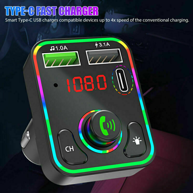 - Dual USB Charging Ports and Type-C Fast Charger: This car FM transmitter with two USB ports for charging devices, it has two USB charging ports, can charge two devices at the same time and has overcharge protection. Smart Type-C USB charges compatible devices up to 4x speed of the conventional charging