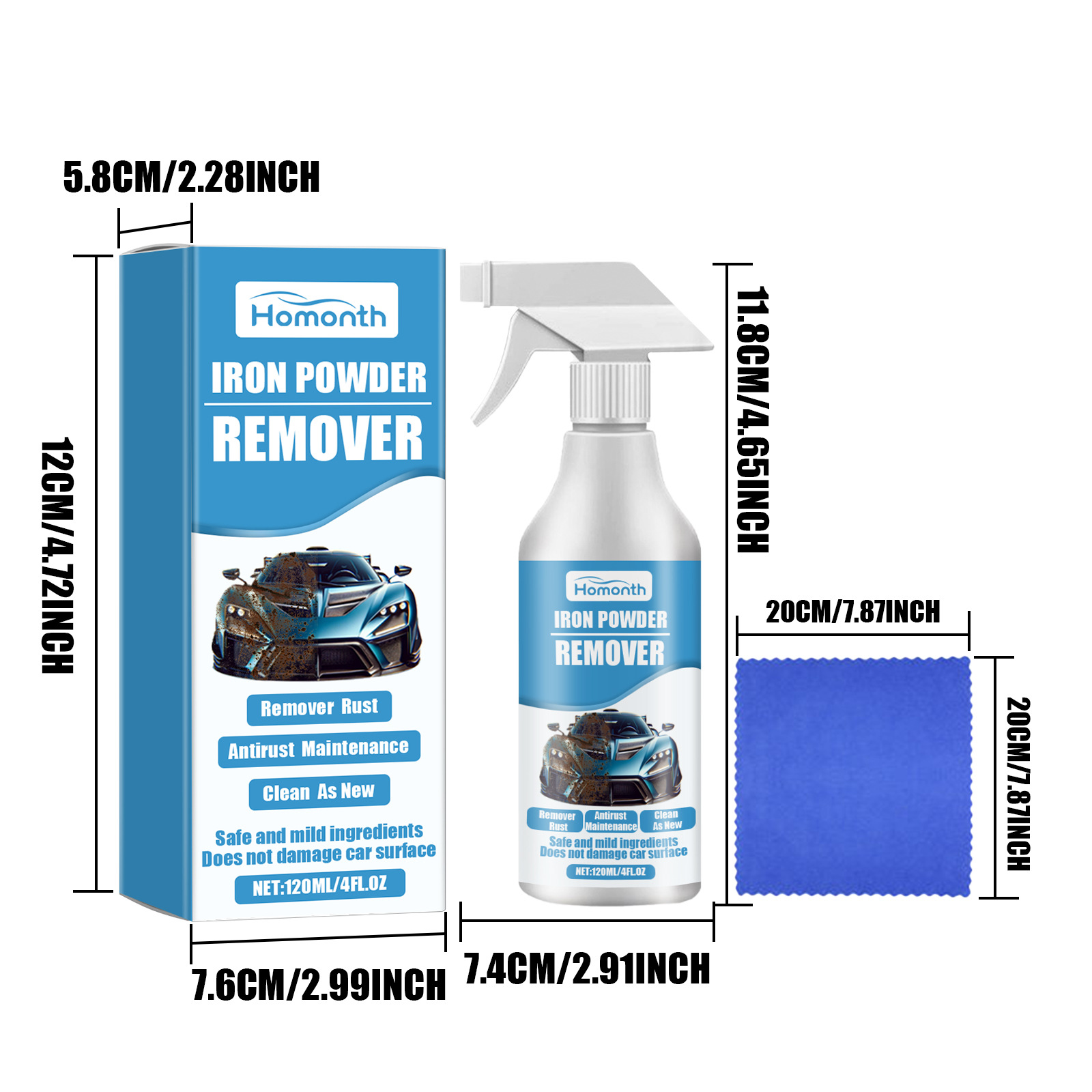 Product Size: rust remover: 7.4 * cm; Cloth: 20 * 20cm