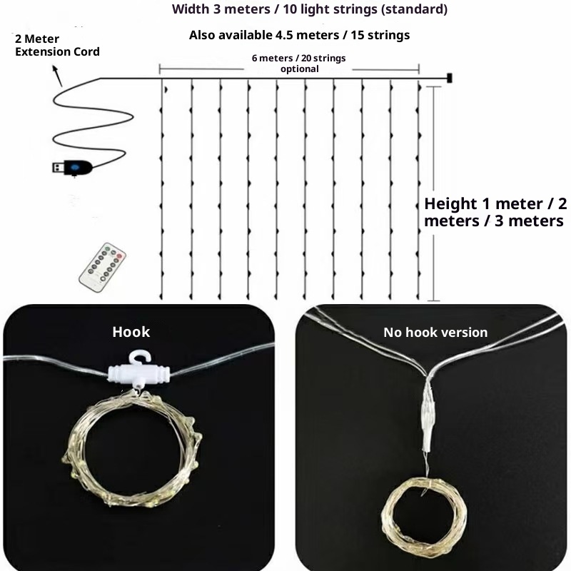 Specification: Curtain Lighting Chain Copper Wire Lamp Outdoor Atmosphere Decoration Starry Sky Lighting Chain