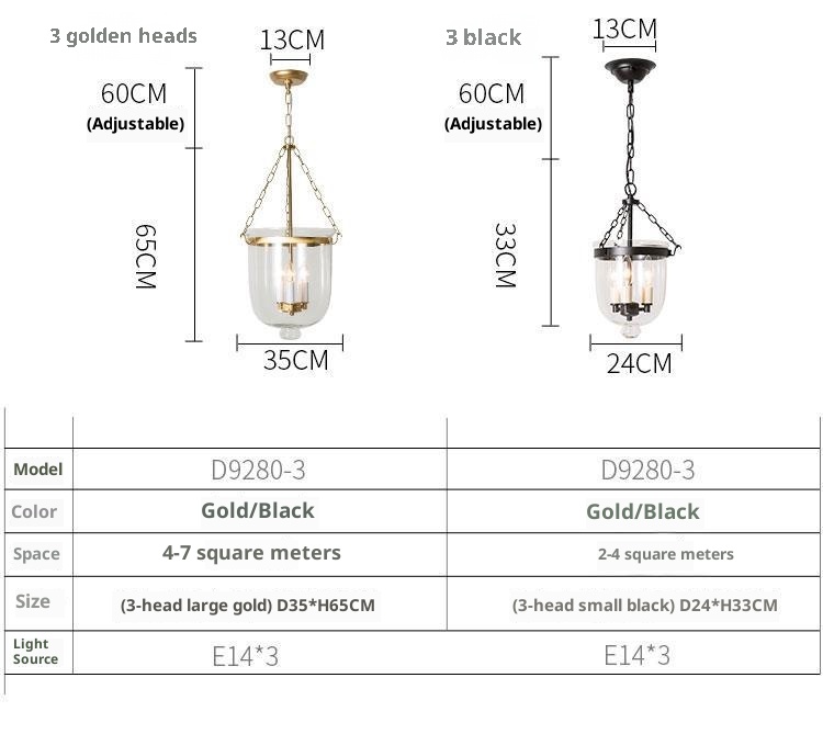 Light color: D35 * H65CM 3 head large gold, D35 * H65CM 3 head large black, D24 * 33CM 3 Head small gold