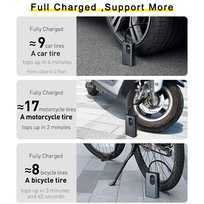 A heat-resistant PTFE piston rod and aU-metaL cylinder help stabilize the body, even if the low-current permanent magnet motor runs at high speed. Do not worry about shake and cylinder blast when pressurized inflation.