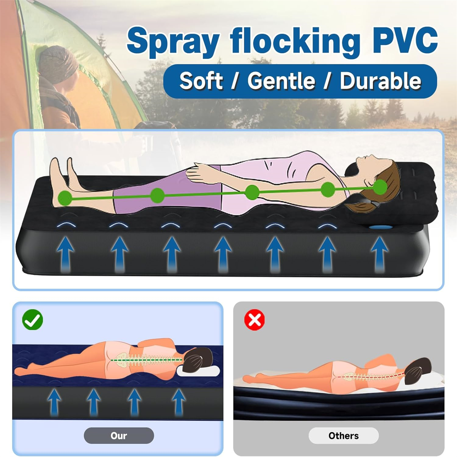 [Relax in comfort] Experience ultimate comfort with our air mattress, featuring a soft and skin-friendly fabric that conforms to your body’s contours for a peaceful sleep. Measuring 10 inches longer than others, you can fully stretch your legs and sleep comfortably without having to curl up