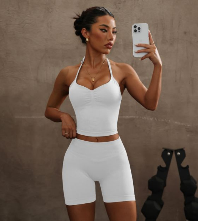 Specification: Halter Spaghetti Straps Exercise Vest High Waist Crimp Shorts Suit