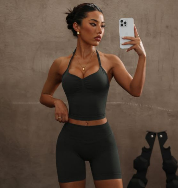 10 reviews for Halter Spaghetti Straps Exercise Vest High Waist Crimp Shorts Suit
