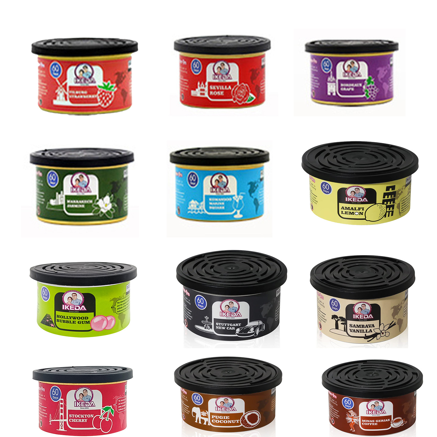 Color: 1 pack of new car flavor, 1 pack of bubble gum, 1 pack of vanilla flavor, 1 pack of lemon flavor, 1 pack of coconut flavor, 1 pack of coffee flavor, 1 pack of cherry flavor, 1 strawberry flavor, 1 grape flavor, 1 juice flavor, 1 jasmine flavor Bag, 1 rose flavor bag