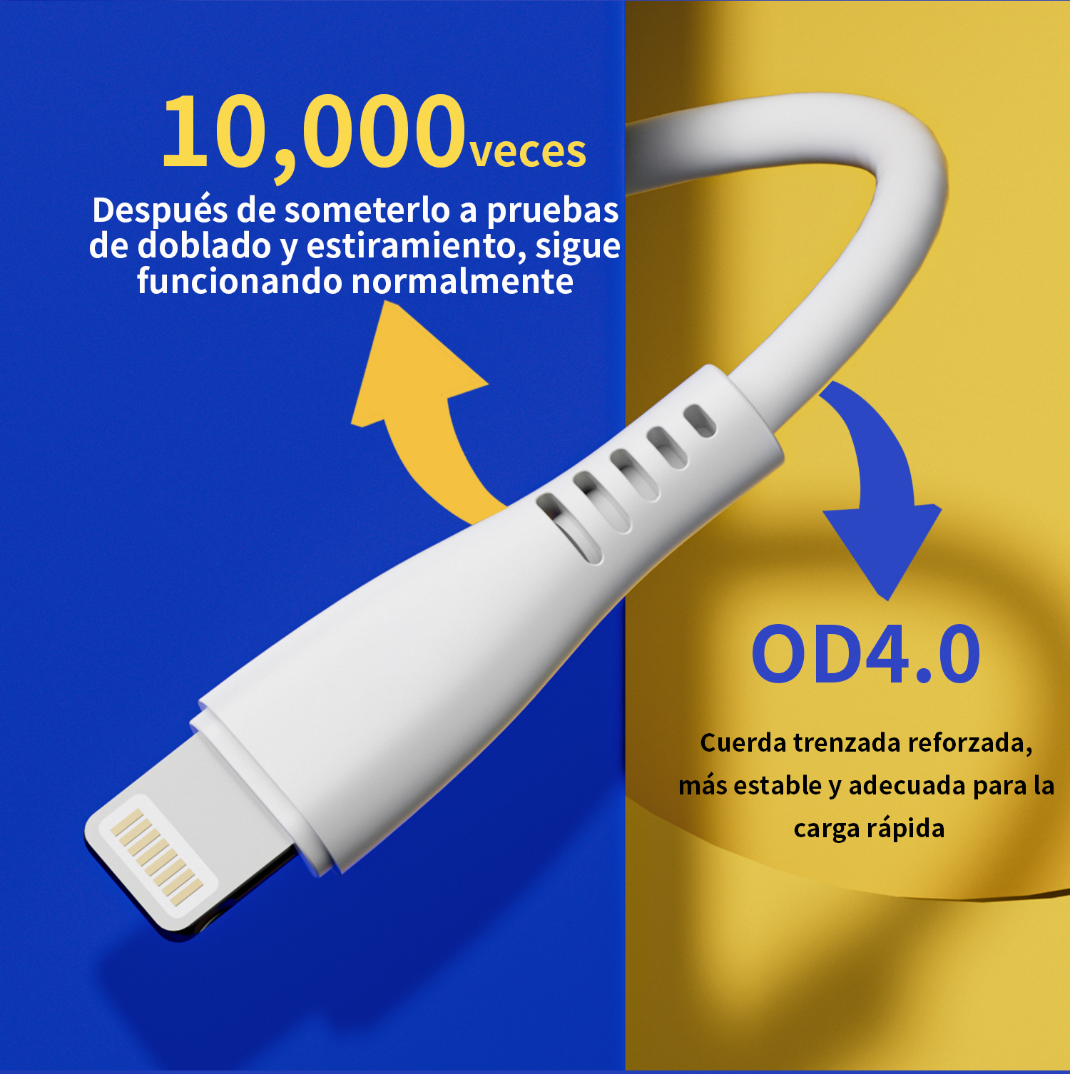 | 1. Cable type: USB to Lightning 2. Charging power: 2.1A 3. Internal cores: 4 wires 4. Data transfer speed: 480 Mbps 5. Length: 1 meter 6. Cable material: PVC |