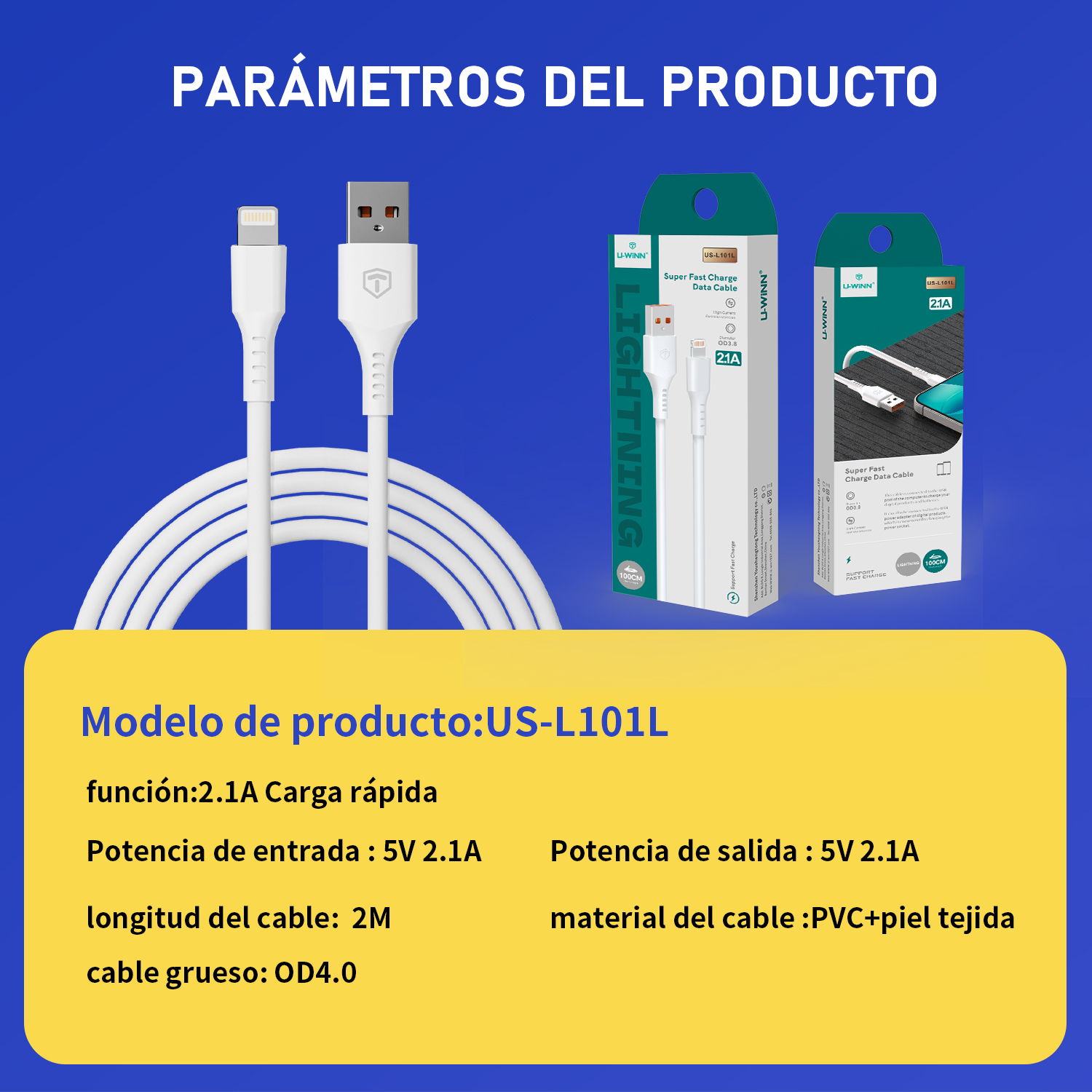 Specification: L101 Lightning Cable 2.1A 1M White USB 3.0 UWINN
