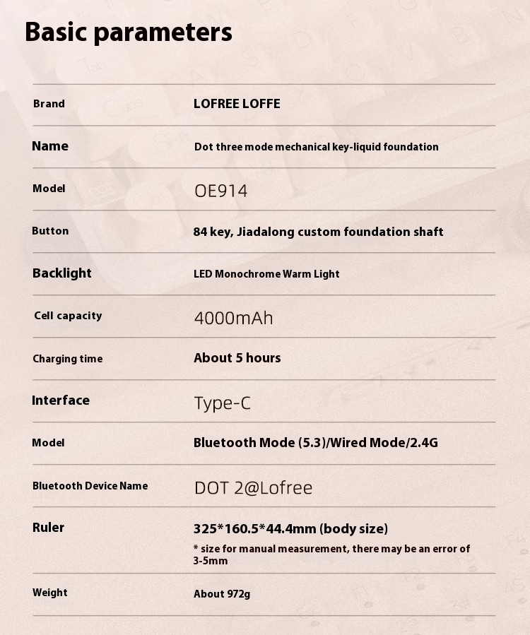 Specification: Liquid Foundation Keyboard Wireless Mechanical Bluetooth Three-mode Hot Plug Office 84 Keys