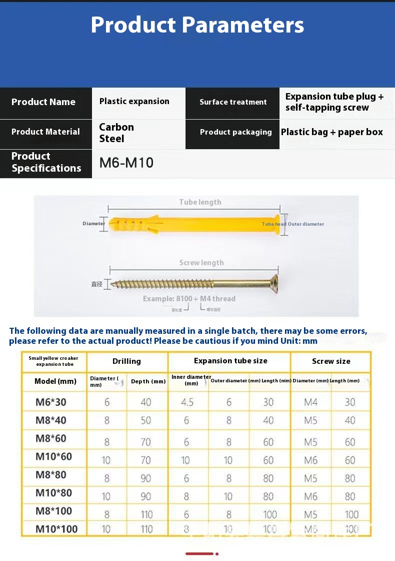 Specification: Little Yellow Croaker Plastic Expansion Bolts Nylon Expansion Pipe