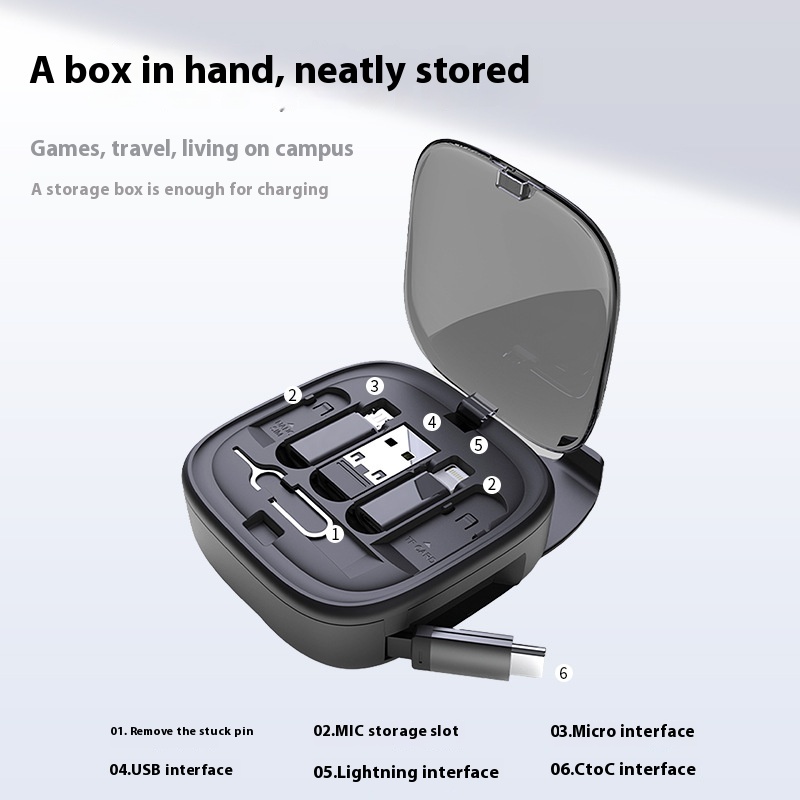 Multifunctional Telescopic Charging Data Cable Storage Box Suit