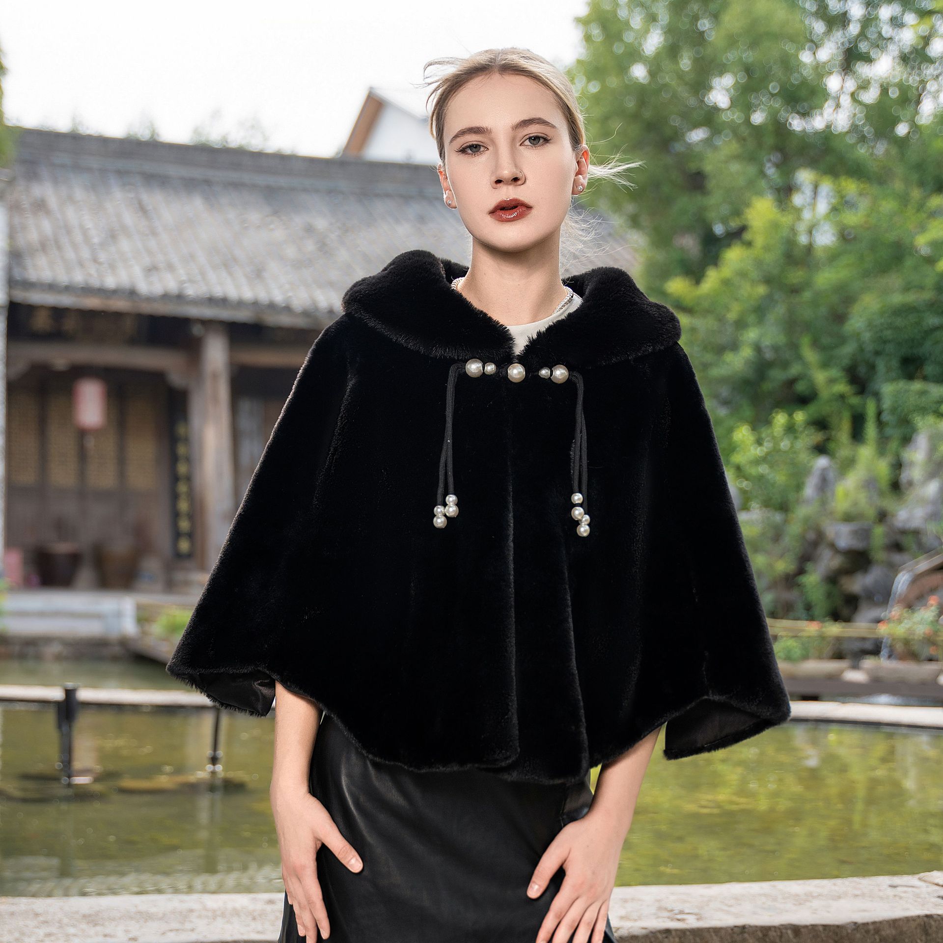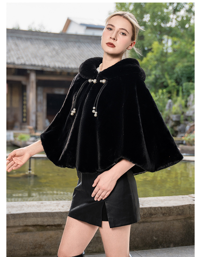 New Plus Size Cloak Knitted Plus Fluff Thickened Fur Shawl