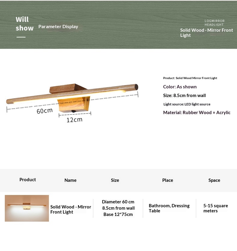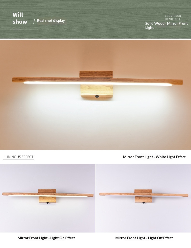 10 reviews for Nordic Solid Wood 110V Wall Lamp With Switch, Japanese Long Mirror