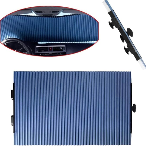 Retractable Car Windshield Sunshade – A foldable, honeycomb-structured sunshade that reflects solar energy, keeping your car cooler and protecting the interior from heat damage.