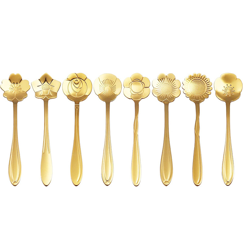 Stainless Steel 8-piece Gold Cherry Blossom Spoon