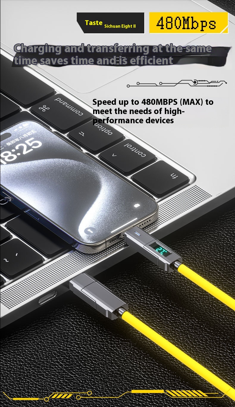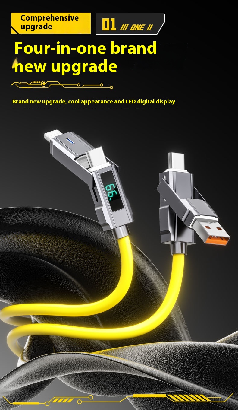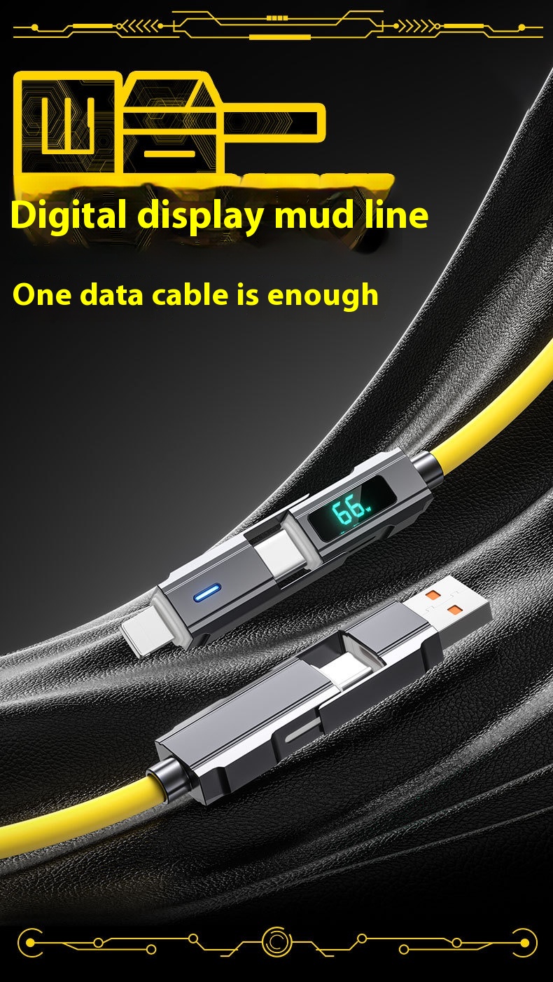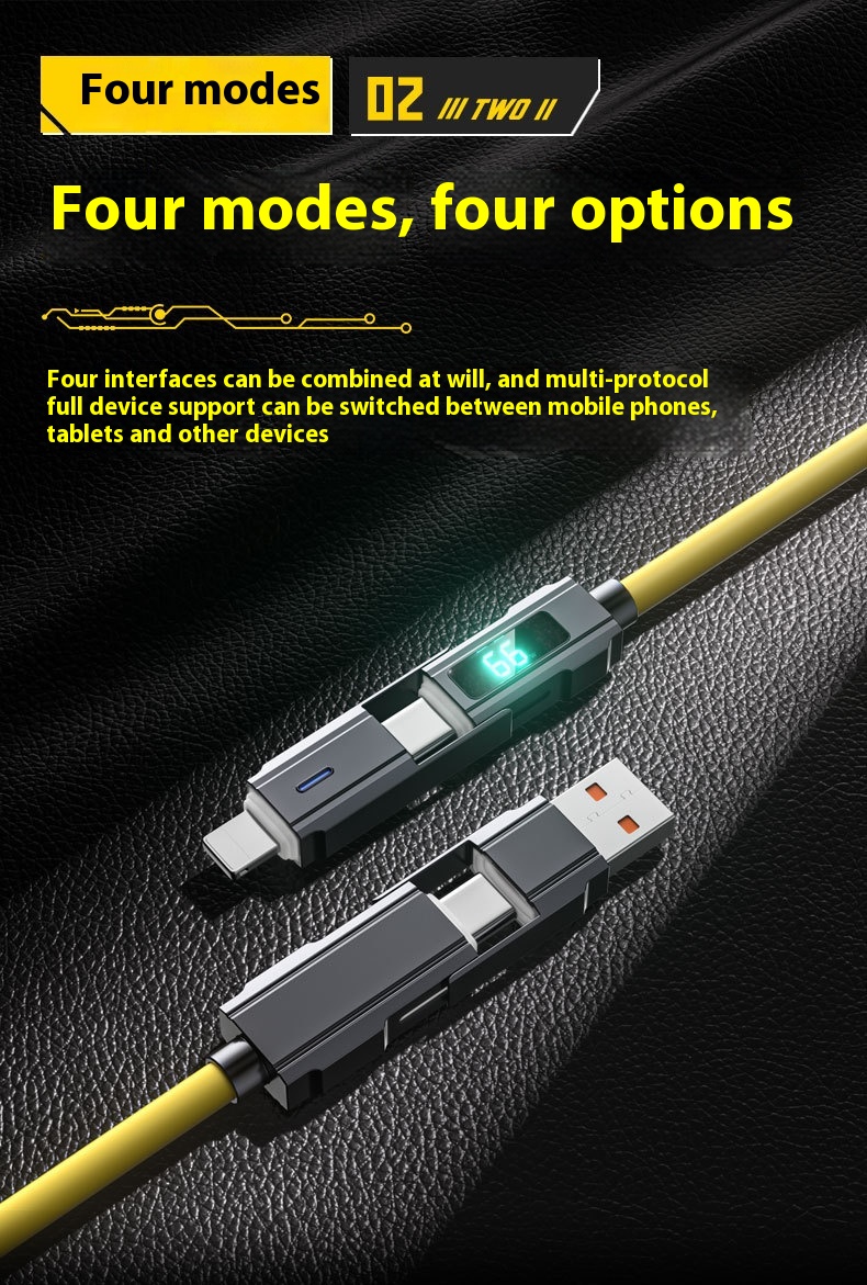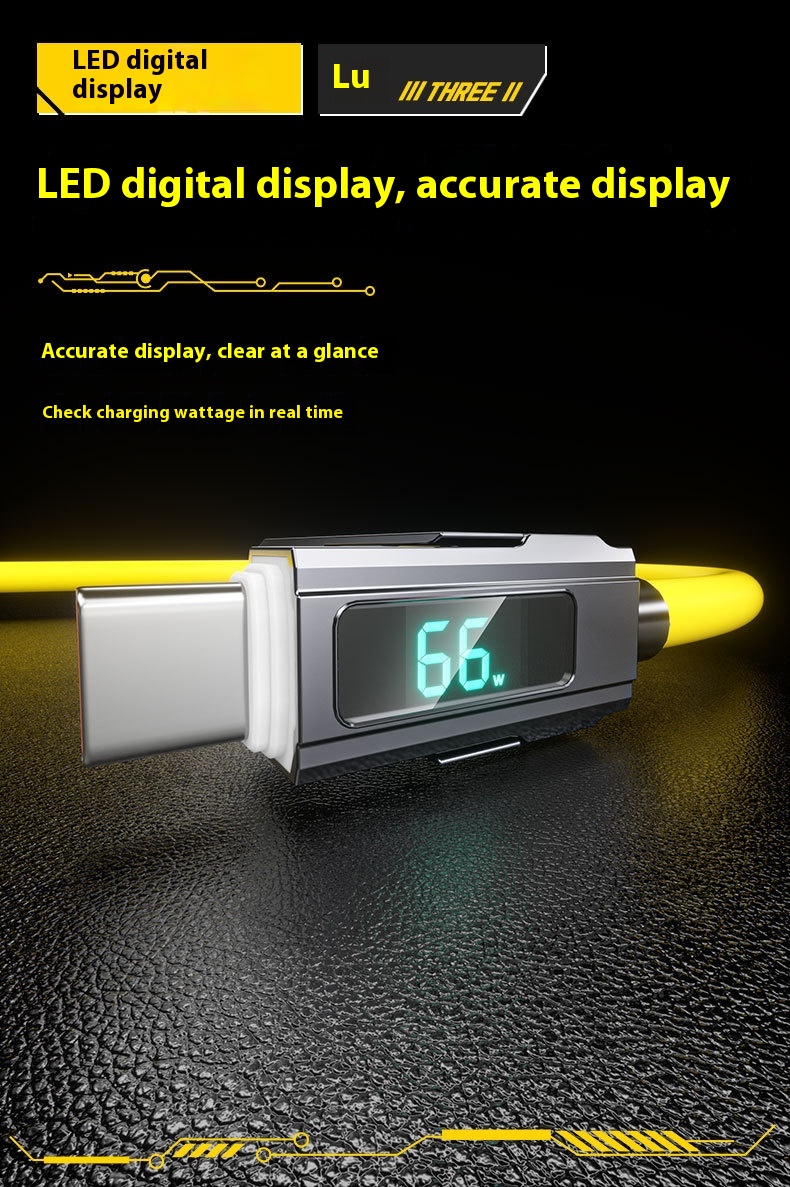 Super Fast Charge Portable PD27W100W Silicone LED Digital Display Two-drag Two Data Cable