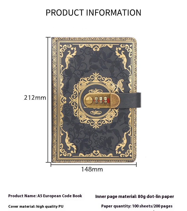 Specification: Thickened Creative A5 Password Diary With Lock