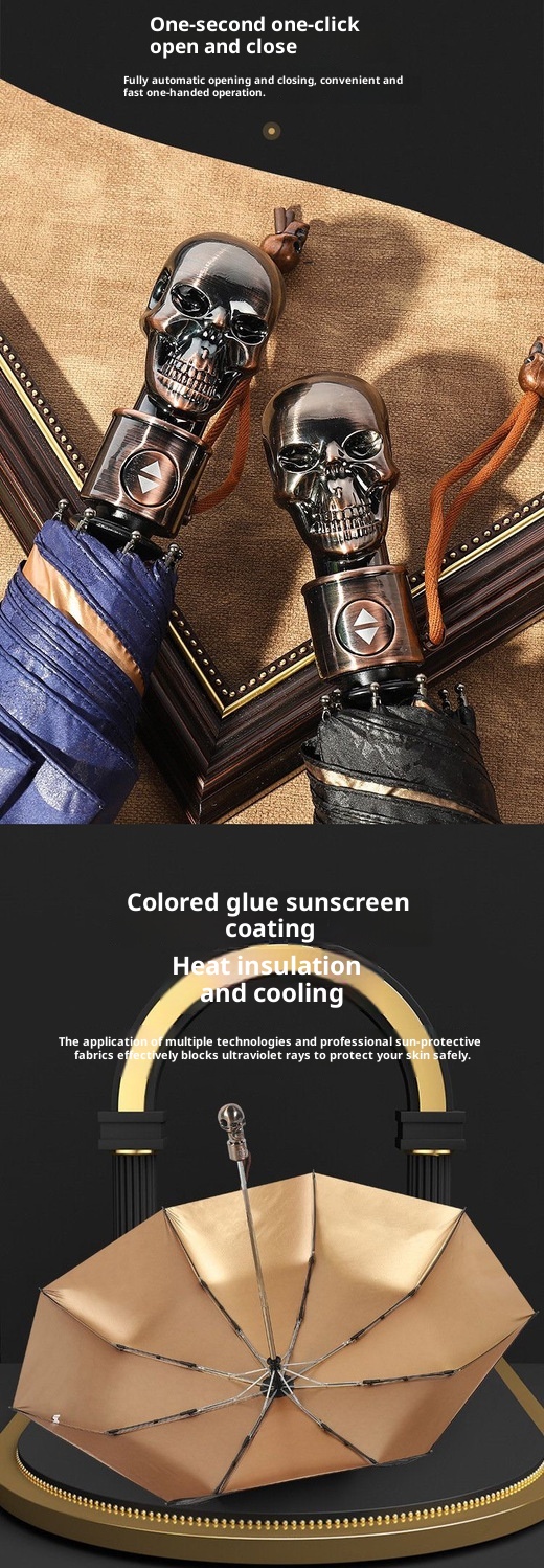 10 reviews for Three-fold Automatic Skull Dual-use Sun-proof UV-proof Wind-resistant Umbrella