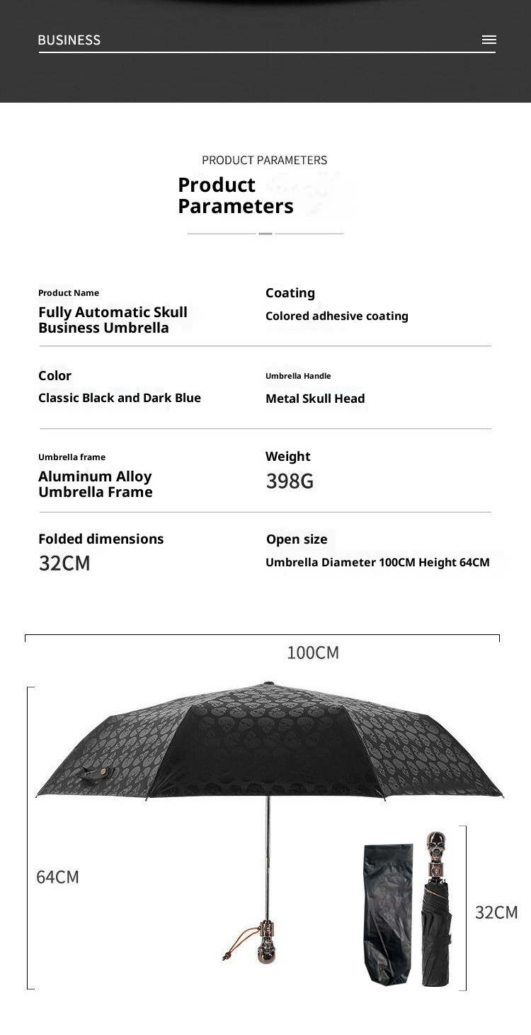 Specification: Three-fold Automatic Skull Dual-use Sun-proof UV-proof Wind-resistant Umbrella