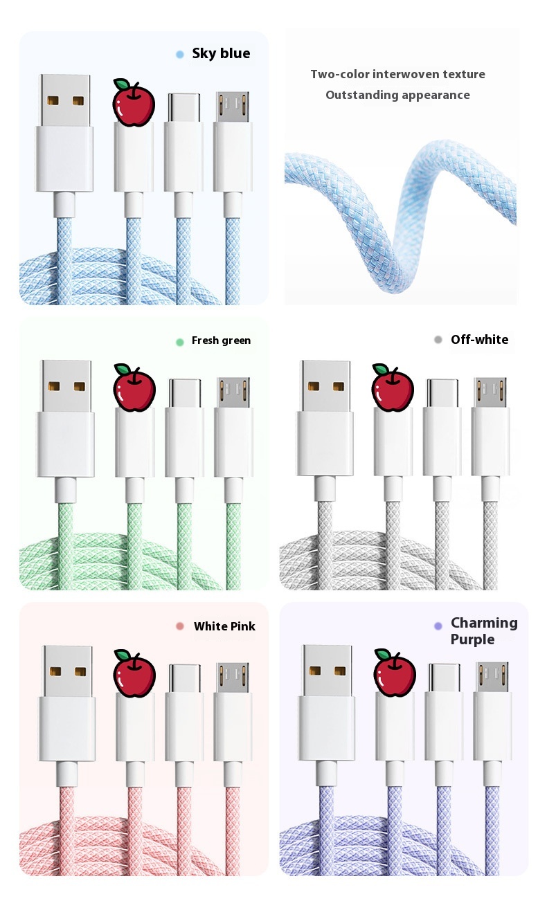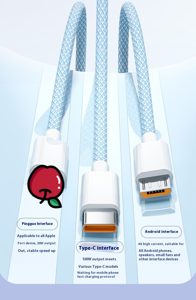 Color: Three-in-one data cable 1.2 m, three-in-one data cable 2 m, three-in-one data cable 3 m
