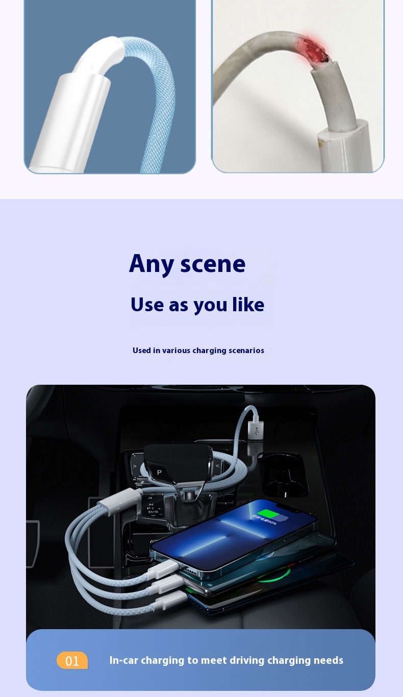 Three-in-one Data Cable 6A Multifunctional Fast Charge Line