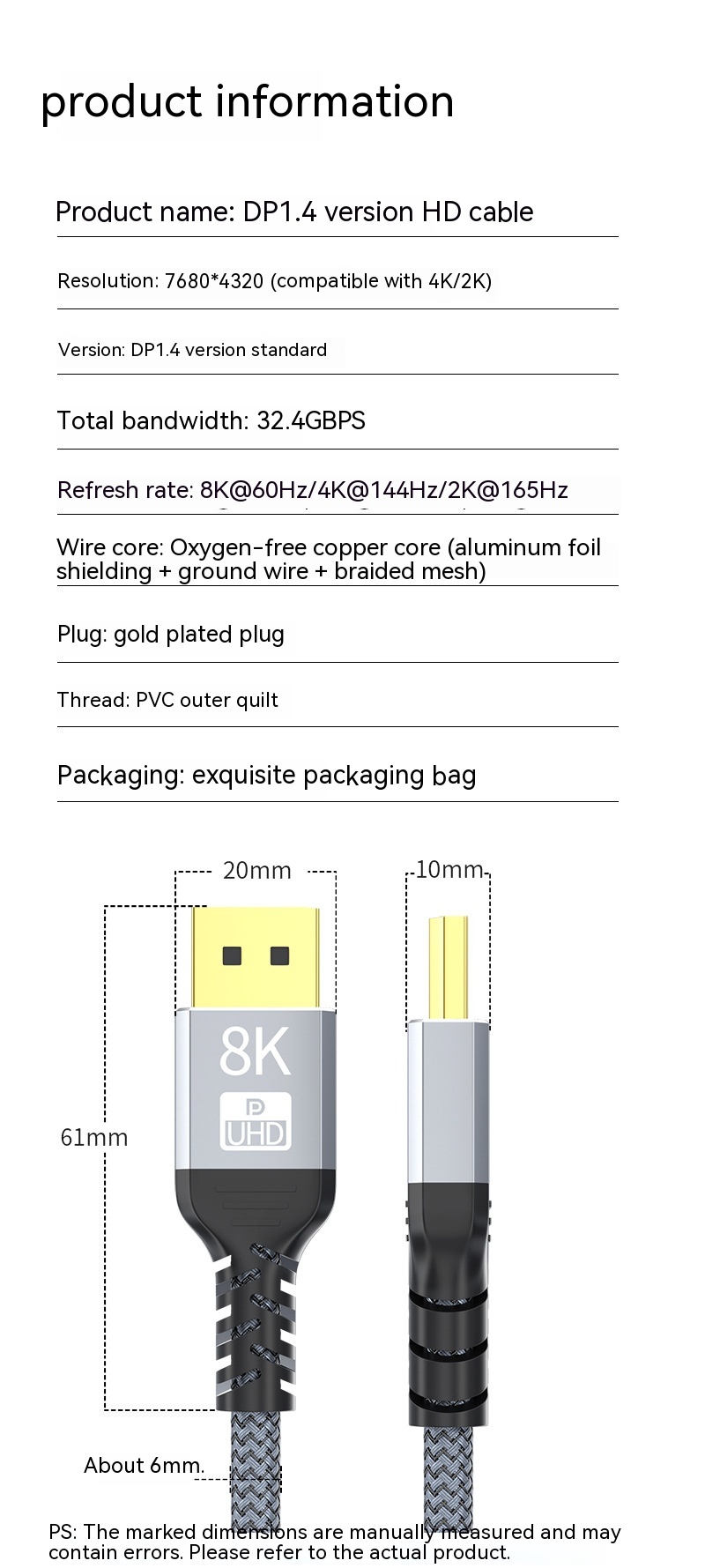 Specification: TV Computer Host Display Connection Line 14 8k
