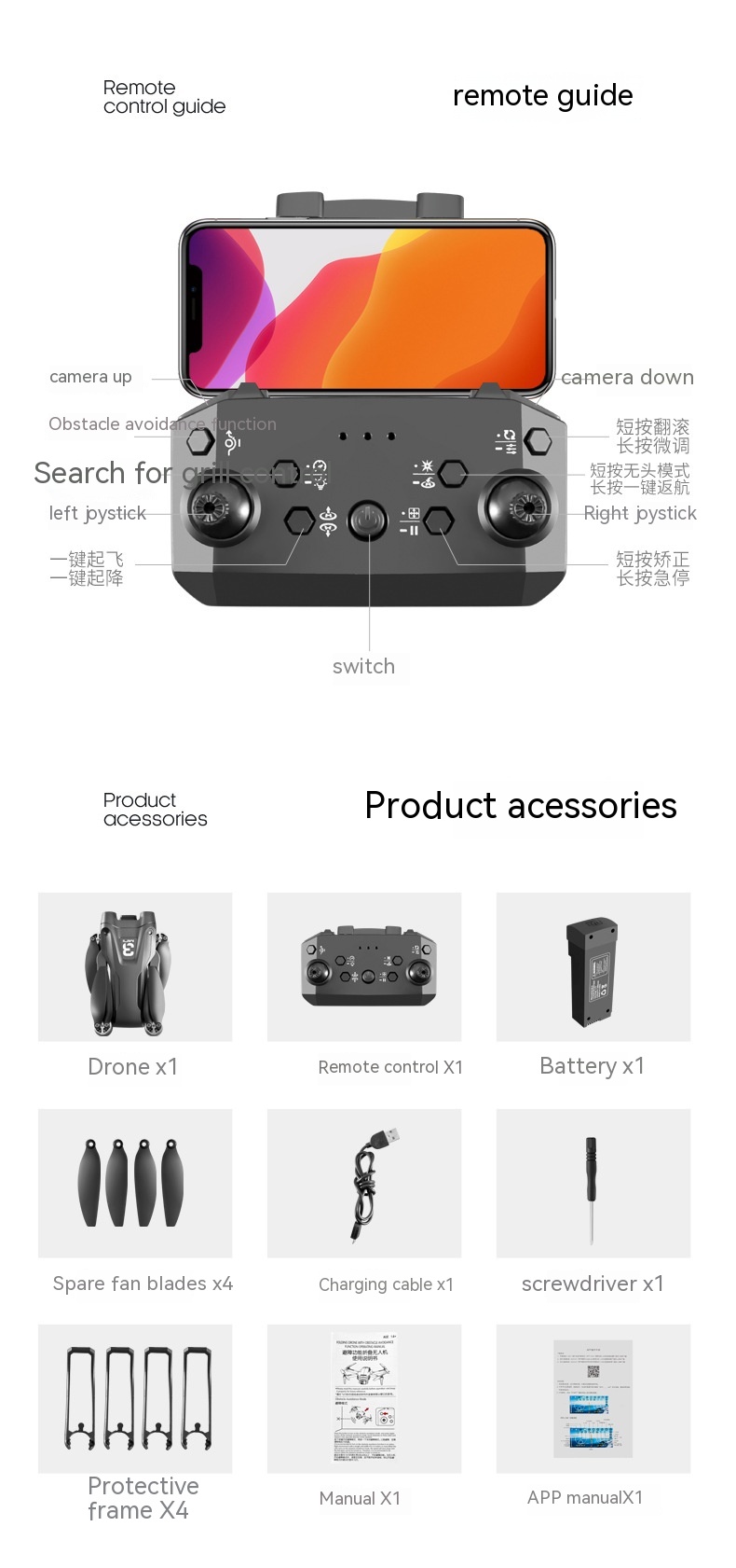 Features: Brushless Motor electric adjustment camera 3 side obstacle avoidance
