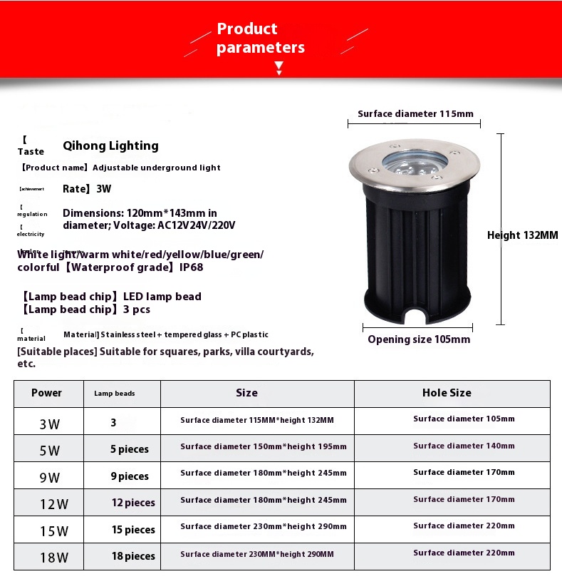 Specification: Underground Led Outdoor Waterproof Buried Spotlight Embedded Tree Projection Lamp