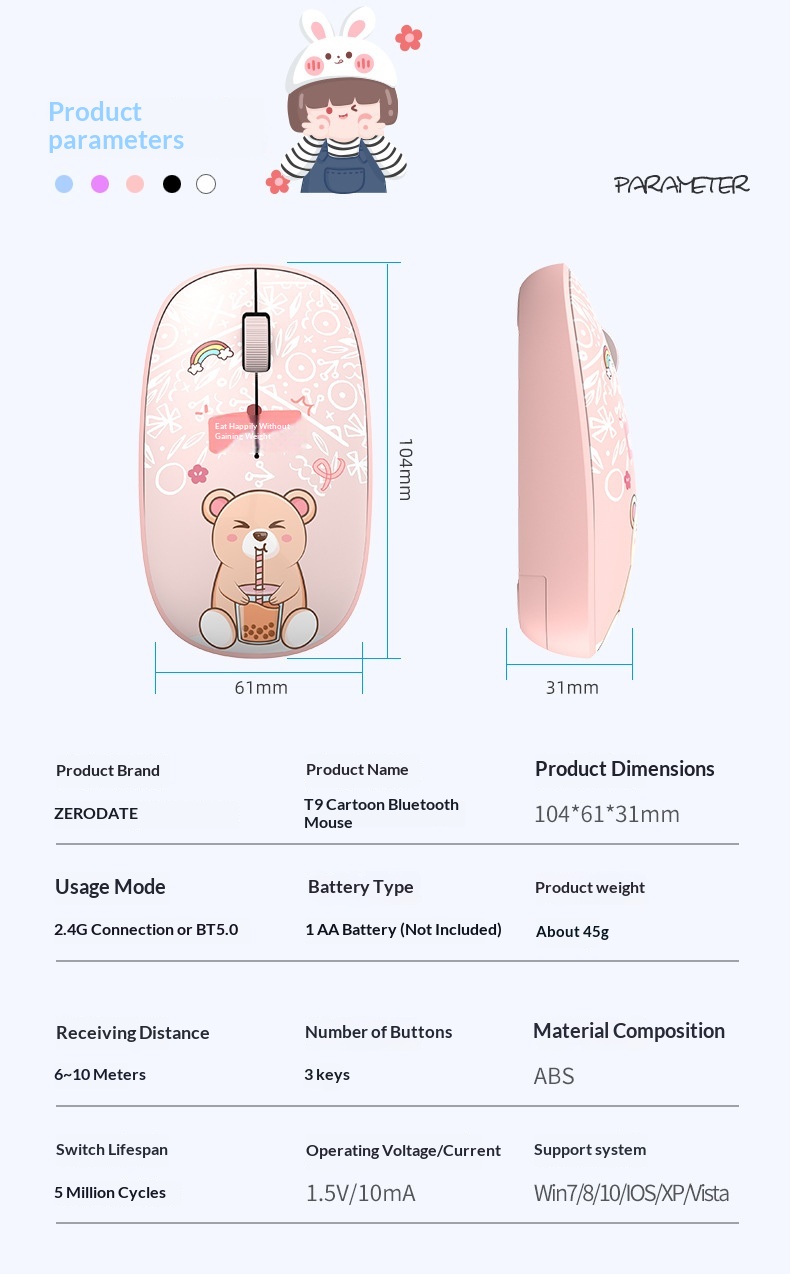 Specifications: 2.4G version (black), 2.4G version (white), 2.4G version (blue), 2.4G version (pink), 2.4G version (purple), 2.4G version [Full of Energy] (purple), 2.4G version [Eat Whenever You Want Without Gaining Weight] (pink), 2.4G version [Stay Fairer Even in the Sun] (white), 2.4G version [Abundant Every Day] (blue), 2.4G version [Positive Mindset] (black)